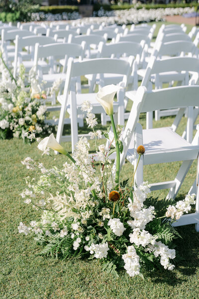 Perfectly planned to every detail, a classic affair on the beach! White & green florals with hints of browns to elevate the setting, while the bridal party popped with pinks, yellows and oranges.